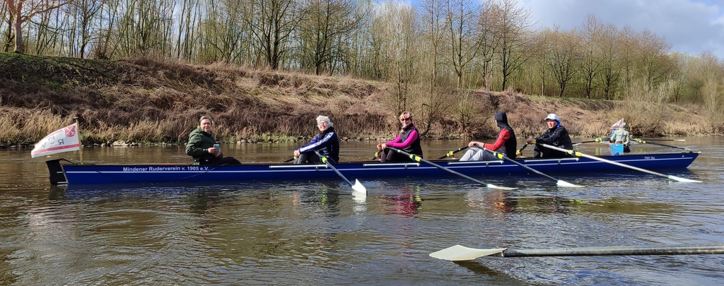 Gut gelaunt ging es dann weiter auf unserer altbekannten und geliebten Heimat-Ruderstrecke via Petershagen zum Bootshaus.
